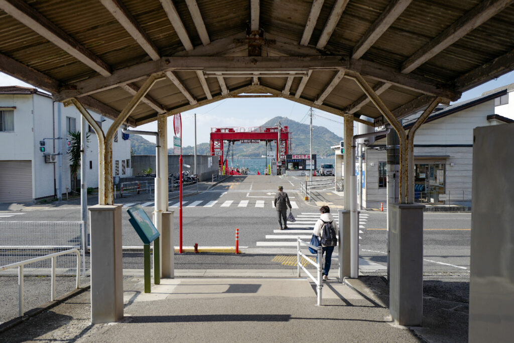 ここからは、伊予灘に浮かぶ島々と行き来するフェリーがたくさん発着しているようで、港に停泊している船へトラックや乗用車、バイクが日常茶飯事といった様子で乗り降りしていく。