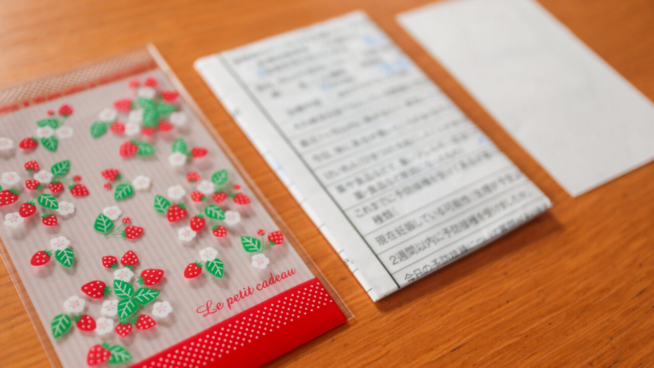 右手側から、「予防接種証」と2回分の問診票と、家に余っていたポチ袋。