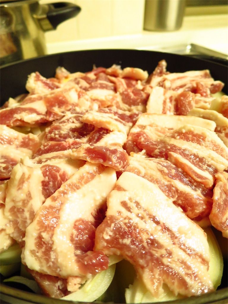- 今回の豚バラ肉は、日曜日に買い出しで買ってきたものにすぐに塩麹をまぶしてポリ袋に密閉し、チルドに入れておいたもの。金曜日の夜に調理しましたが、まったく問題なし。むしろやわらかさと旨味が増すようです。