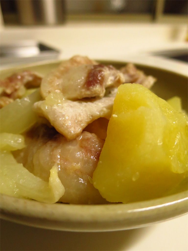 ふだんはじゃがいもと豚バラ肉だけでつくることが多いのですが、今回わが家にとってはすこしじゃがいもが少なく感じたので、たまねぎを加えてみました。塩肉じゃがといった感じで、こちらもおいしかったです。